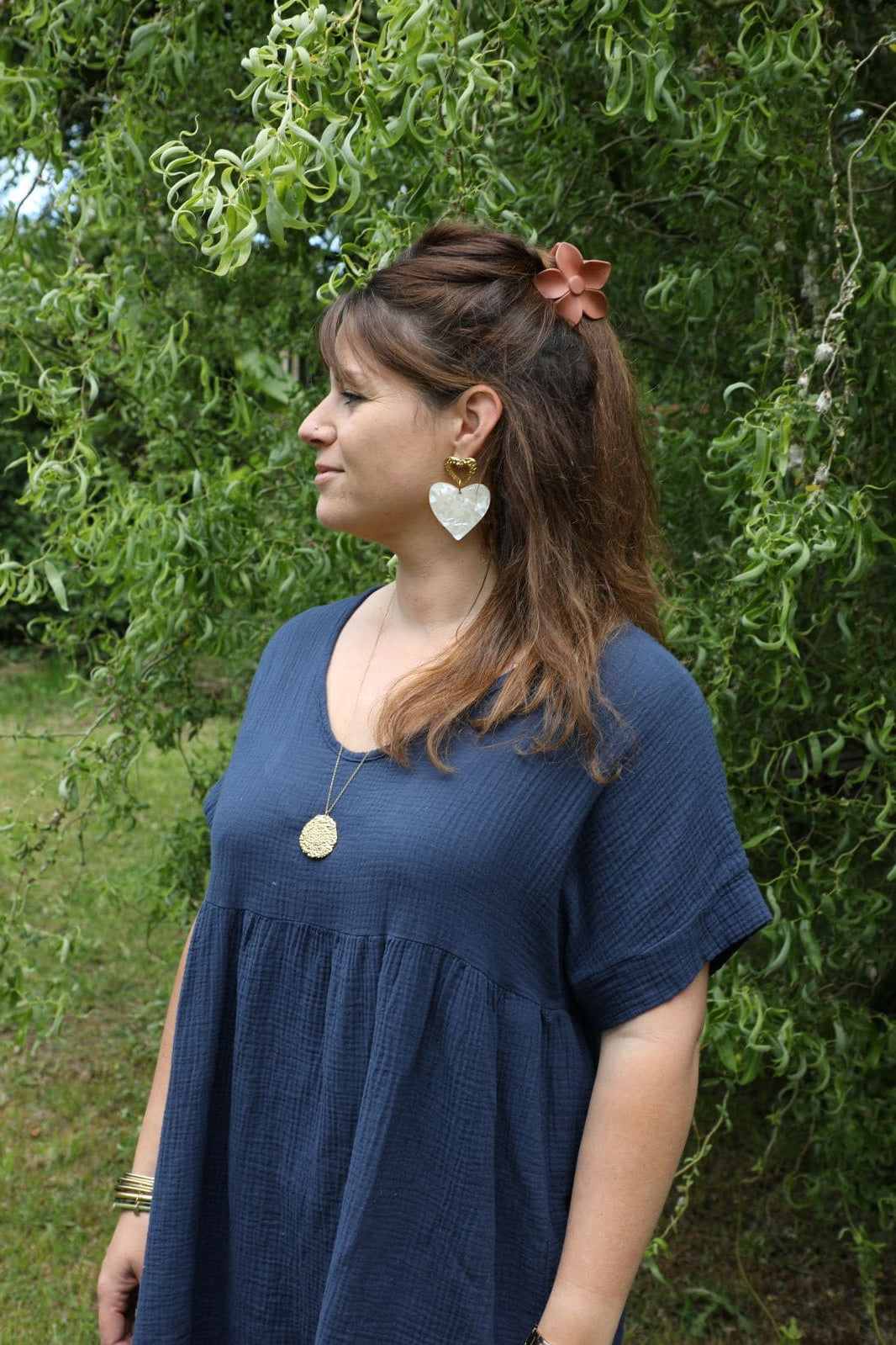 Nadège mesure 1.55m porte la taille unique pour son 46 habituel.